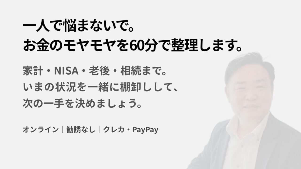 一人で悩まないで、あなたのお金のモヤモヤを一緒に解決しませんか?